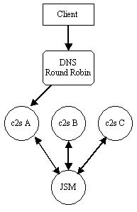 The first thing that we can do is to split out the c2s from the server and make it a seperate process/component. Once that is done, we can replicate the c2s processes over multiple machines. Each one would connect back to the main server running the JSM and everything should work just fine.